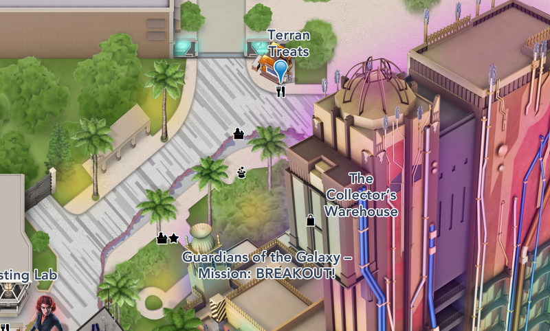 If you’re looking for Terran Treats, you’ll find it over by Guardians of the Galaxy Mission: BREAKOUT! There are a few different items on the menu, including two new sweet treats, the Sweet Spiral Ration and the Cosmic Cream Orb.