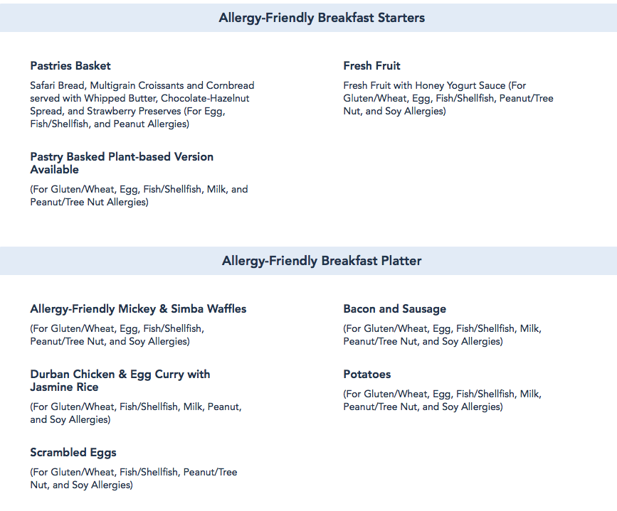 Here’s a look at the Allergy-Friendly options as shown on Disney’s website.