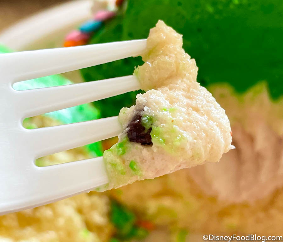 But we DO need to talk about that cookie dough filling, because it was good. The flavor is spot-on, and it has granular pieces just like raw cookie dough does! Our only complaint here is that there weren’t too many chocolate chips in, ya know, the chocolate chip cookie dough.