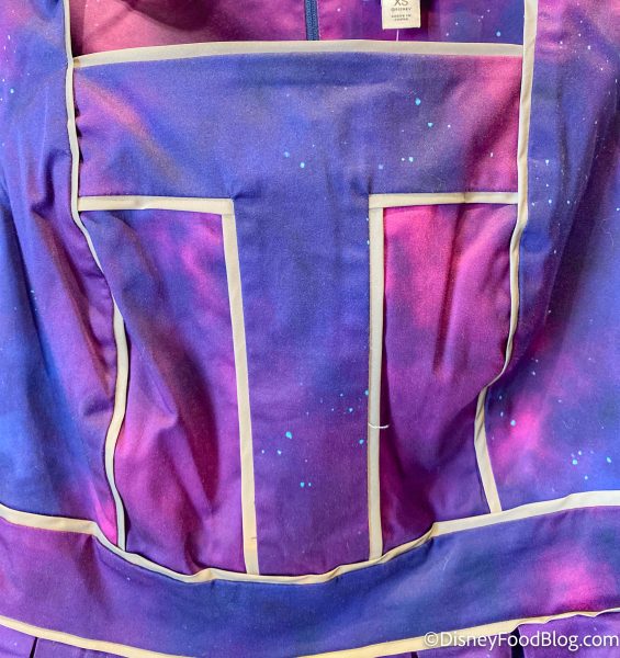 There’s also a Tomorrowland logo on the skirt. We spot all of our favorites — Space Mountain, Tomorrowland Speedway, Astro Orbiter, and even the new TRON coaster ride vehicle!