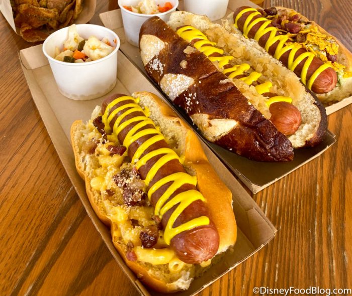 There are 4 hot dogs on the menu — the California BLTA Dog ($11.49), the Pretzel Dog ($11.49), the Truffle Bacon Macaroni & Cheese Hot Dog ($11.49), or the All-Beef Quarter-pounder Hot Dog ($9.49)! Also new to the menu is the plant-based Chicago-style “Hot Dog” Salad.