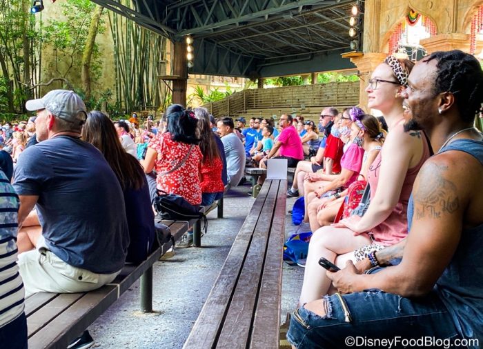 Over at EPCOT, we experienced a similar (albeit much less crowded) scene at America Gardens Theater!