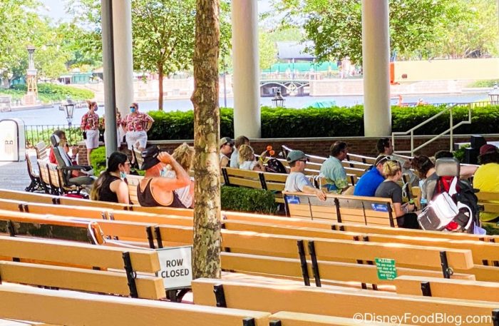 This meant you’d still have to wear a mask at, say, America Gardens Theatre in EPCOT or the Feathered Friends Flight show at Disney’s Animal Kingdom, even though they’re both outdoors.