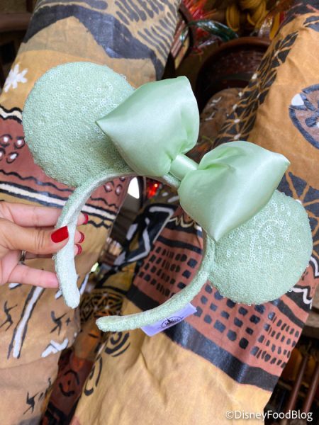 But this newest pair might be one of our recent favorites! And there aren’t even any donut sprinkles on it! They’re MINT ears, and we spotted them at Johari Treasures in Animal Kingdom Lodge! And what a TREASURE they are!
