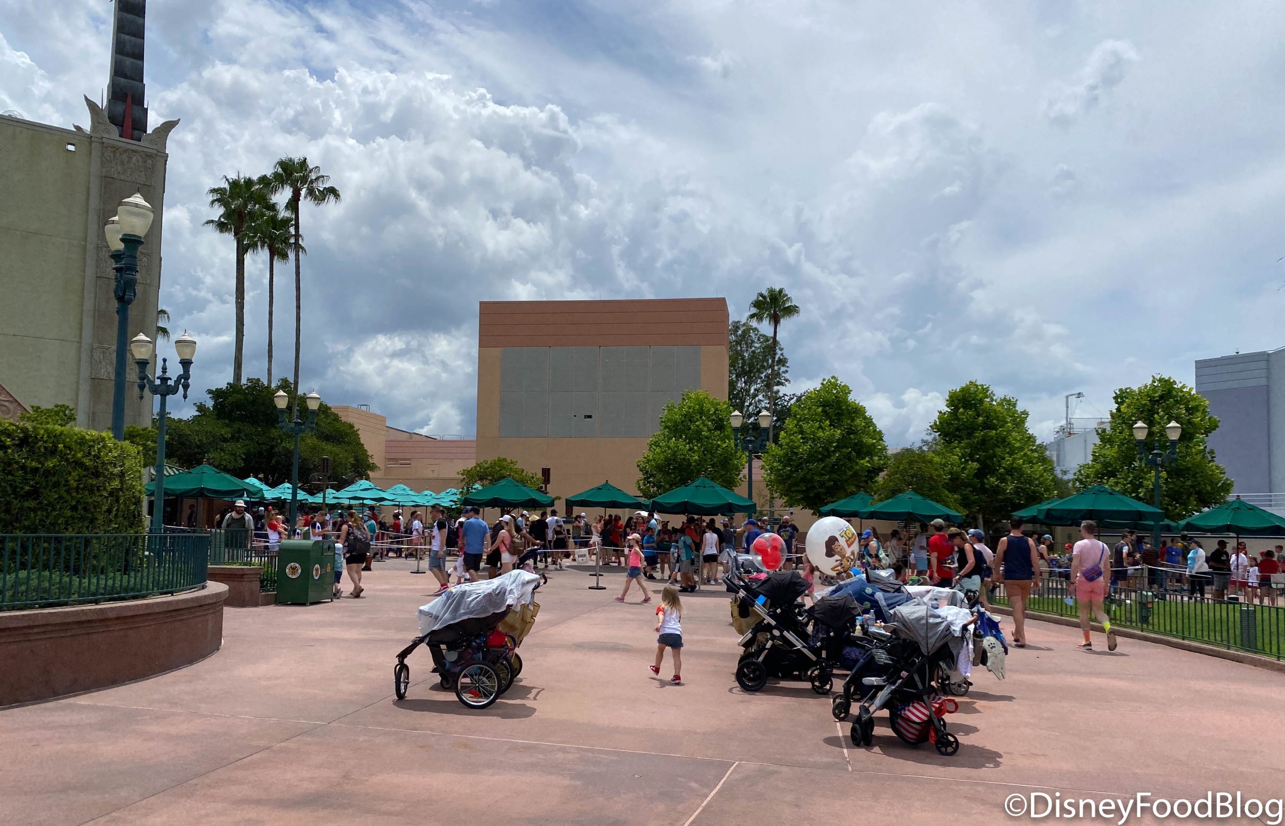 But, the biggest queue we saw in Disney’s Hollywood Studios was definitely over at Mickey and Minnie’s Runaway Railway. Umbrellas were placed outside in order to shade guests who were waiting in the extended line…