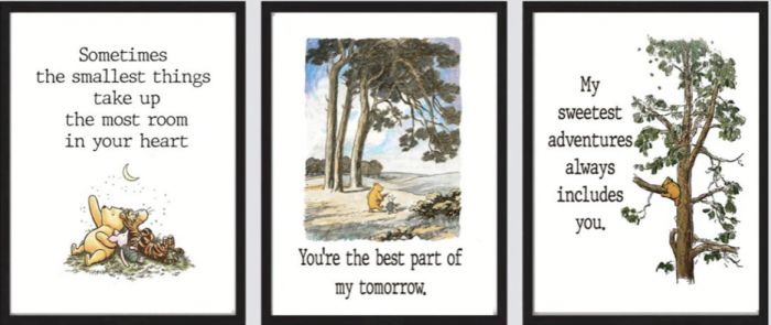 There are also these adorable Winnie the Pooh prints that would look great in a nursery or kid’s bedroom.