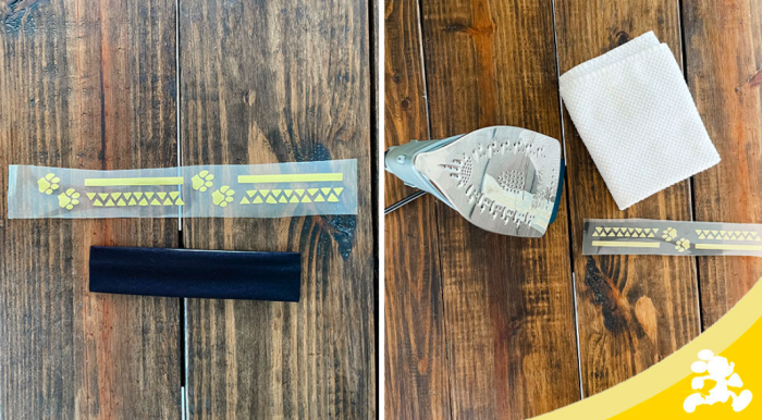 Step 5: Lay down your headband on the ironing board and arrange the vinyl design where you want it to be on the headband.