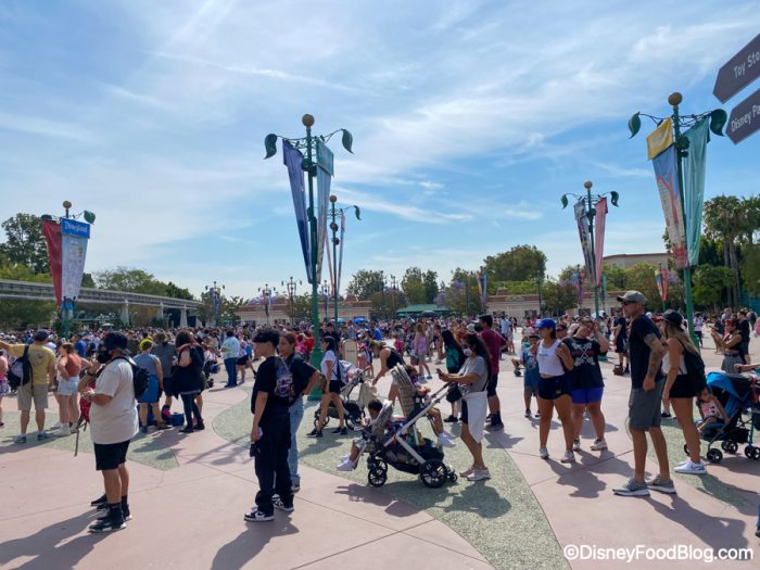 Phew! Now let’s take a trip around Disneyland to check out this latest policy in effect. Walking into the parks, we already saw the first signs of guests following the new rules.