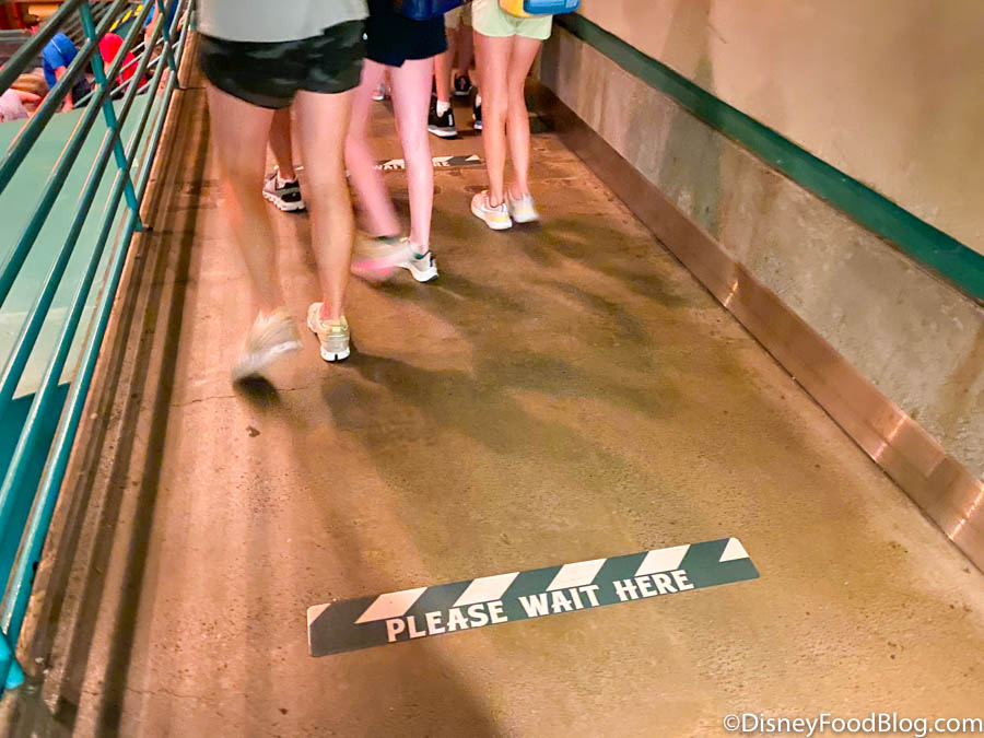 Previously, the pre-show would play on a constant loop, and guests would move through the room via social distancing markers. Now, though, everyone will file into the room and remain there while the pre-show plays from start to finish — just as it did pre-COVID.