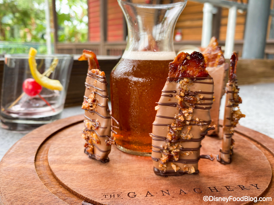 It features thick-cut applewood-smoked bacon dipped in milked chocolate and chipotle ganache from the delicious Ganachery at Disney Springs!