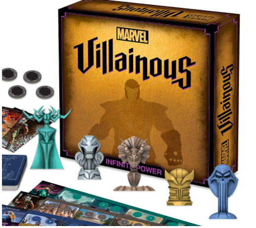 First off, we found a couple of Marvel-themed board games! There’s the popular game Villainous re-imagined with all your favorite Marvel villains! In case you haven’t played Villainous before, it’s a strategy game that’s best for older kids and adults!