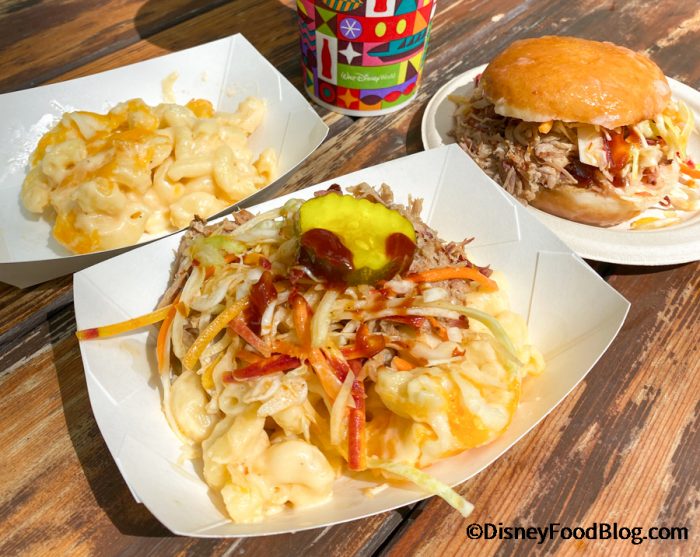 Mac and cheese fans will want to take the time out of their busy day in Disney’s Animal Kingdom to stop by Eight Spoon. It’s a great spot for a quick snack, rather than having to use Mobile Order at other spots like Flame Tree BBQ. The baked mac and cheese, along with the Pulled Pork Jelly Doughnut Sandwich, are more on the unique side of snacks available in the parks. And, they’re fantastic choices, if you’re looking for something different than your regular run-of-the-mill popcorn or ice cream bar!