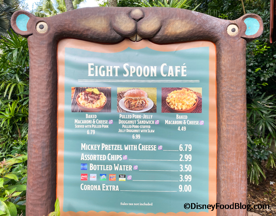 There’s also a Mickey Pretzel with Cheese, Assorted Chips, and several beverages available on the menu, but we’re going for big stops at Eight Spoon!