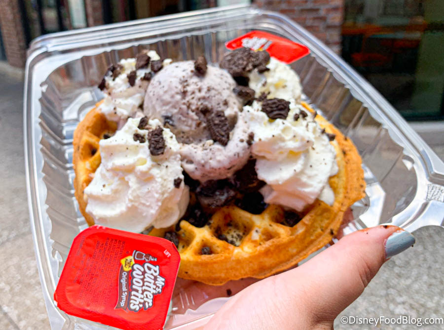 And if it’s not quite enough to fill you up, we highly recommend the cookies and cream waffle, also at Vivoli il Gelato! It’s topped with gelato, whipped cream, and crushed cookies, and you can get one to share (because it’s BIG!) for $12!
