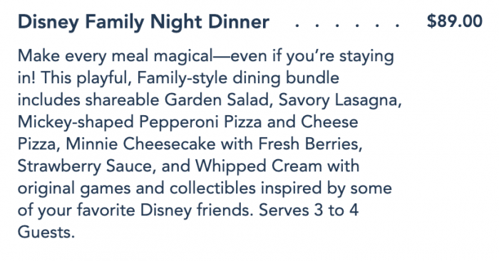 So, what’s included in this giant 3-course meal? Well, quite a bit actually! It’s got a shareable garden salad, lasagna, Mickey-shaped cheese and pepperoni pizzas, and Minnie cheesecake with fresh berries, strawberry sauce, and whipped cream. Plus, you’ll also get original games and collectibles all for $89.