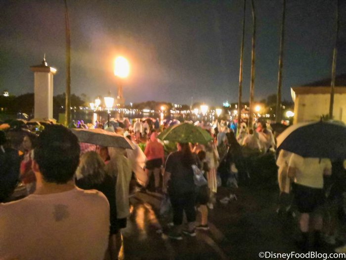 Just about 15 minutes or so before the start of the show, there were quite a few guests waiting for EPCOT Forever to begin.