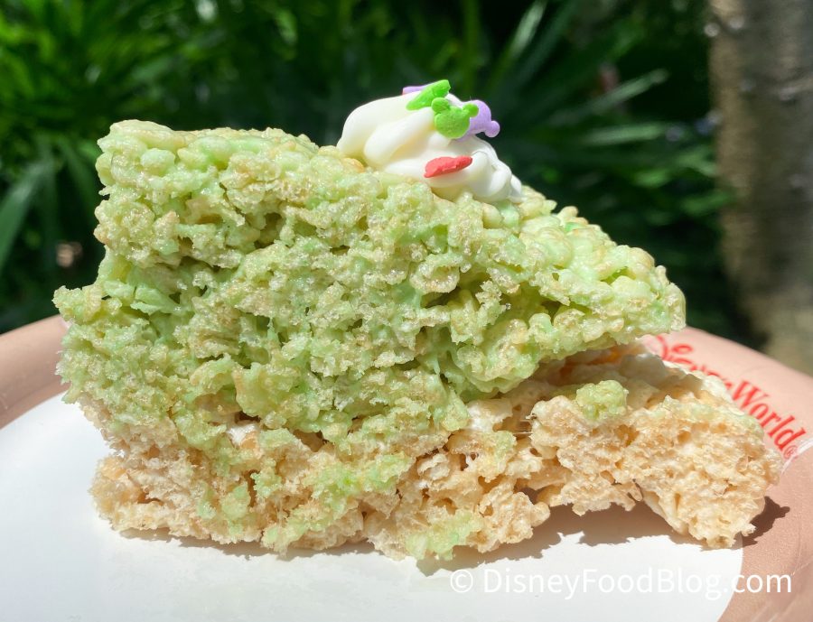 We came to realize that the Key Lime Pie Krispies Treat from Zuri’s Sweet Shop in Disney’s Animal Kingdom to be one of our LEAST favorite pie-inspired Krispies Treat yet. We found the flavor to be WAY too strong; even if you love Key Lime Pie it may be too much! While super clever, this is one slice of “pie” you can skip this summer. It’s available at Zuri’s Sweet Shop for $5.49.