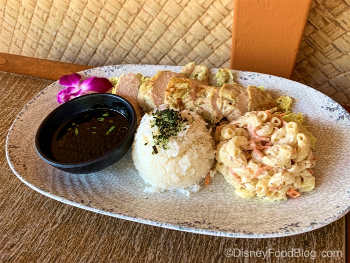 Next, we got the Hawaiian Platter with Furikake seasoned Thai Jasmine Rice and Macaroni Salad with Poached Chicken Breast!
