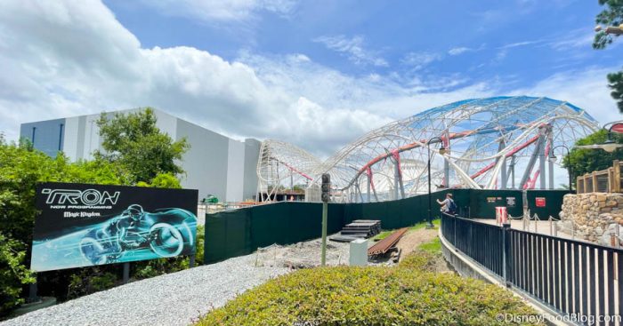 In Tomorrowland, big changes continue at TRON Lightcycle Run as the main crane and much of the construction is gone.
