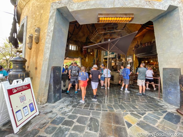 There’s usually a stand outside the entrance to Ronto Roasters where Cast Members would check your mobile order before admitting you to the restaurant. But when we stopped by recently it was gone!