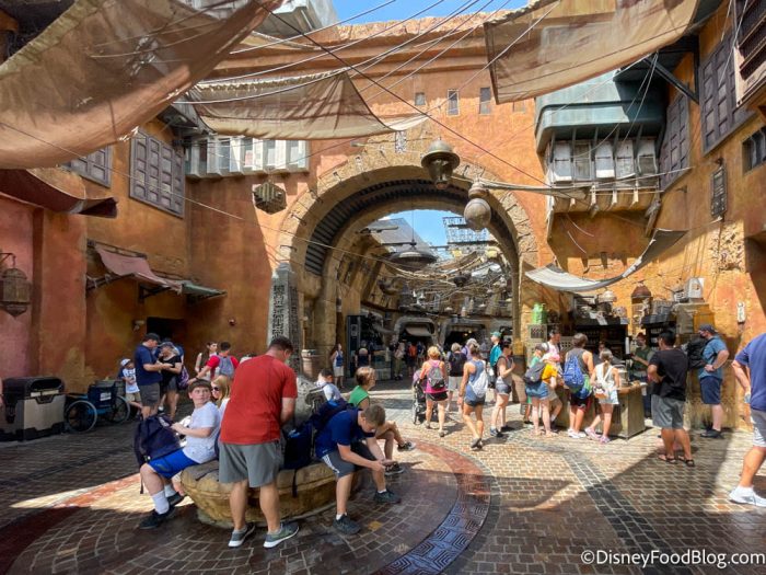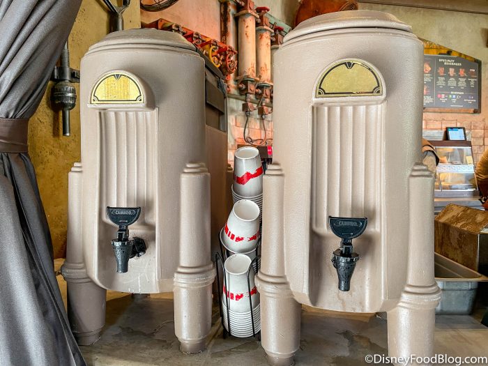 At Ronto Roasters in Galaxy’s Edge (the Star Wars land), there was a new water station where guests can get their own water! This hasn’t been there since the parks closed last year! Now, guests can get their own cups and water inside the restaurant.