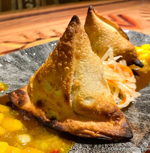 The slaw sounded a little different, but we thought it was a great addition and added more crunch to the Samosas! We loved the tartness from the pickled veggies! Pro Tip: We’d recommend pairing the slaw with the Mango Chutney to mix the tart and sweet flavors!