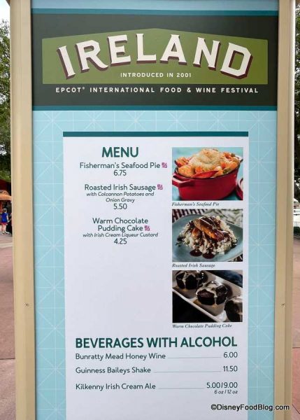 The next menu that we came across was the Ireland booth ready to go with some returning favorites! Although the menu is out, this booth doesn’t open until October 1st.