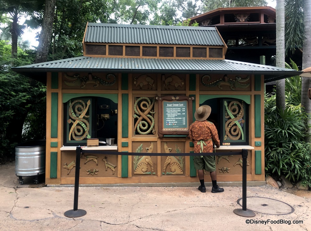 Located in the Discovery Island section of Animal Kingdom, this is a great spot to take a break from a day at the park and enjoy some nice food! The outside of this kiosk is full of cute carvings and fun little details!