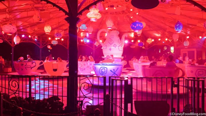 The website doesn’t specify which attractions will receive holiday overlays though. In the past, during Mickey’s Very Merry Christmas Party, we’ve seen overlays at Tomorrowland Speedway (these decorations could generally be seen during the day but were only lit up during the party), Space Mountain, Mad Tea Party, and Monsters, Inc. Laugh Floor. These overlays have generally consisted of either holiday lights and music, and sometimes holiday decorations or other theming.