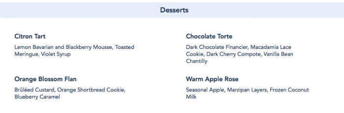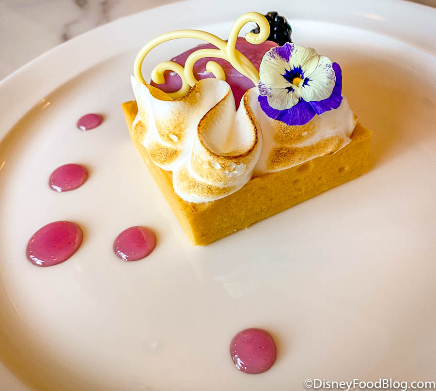 For dessert, we ordered the Blackberry Tartelette with Lemon Bavarian and Blackberry Mousse enrobed in Glacage with Candied Violet…