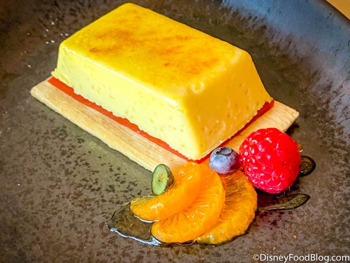 …and the Orange Blossom Flan with Blood Orange Gelée, Orange-scented Shortbread, and Orange Blossom Honey-drizzled Fruit!