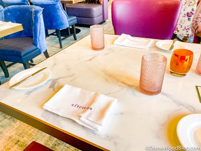 As usual, our table at Citricos was beautiful with colorful seating and a nice table placement!