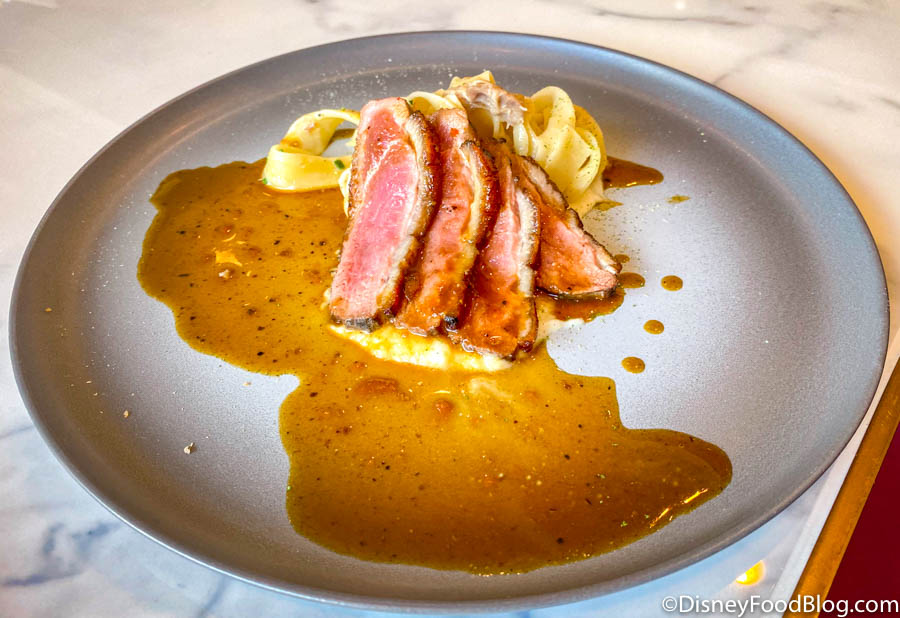 …the Smoked Duck Breast with Fresh Tagliatelle Pasta, Celeriac Purée, and Duck Confit…
