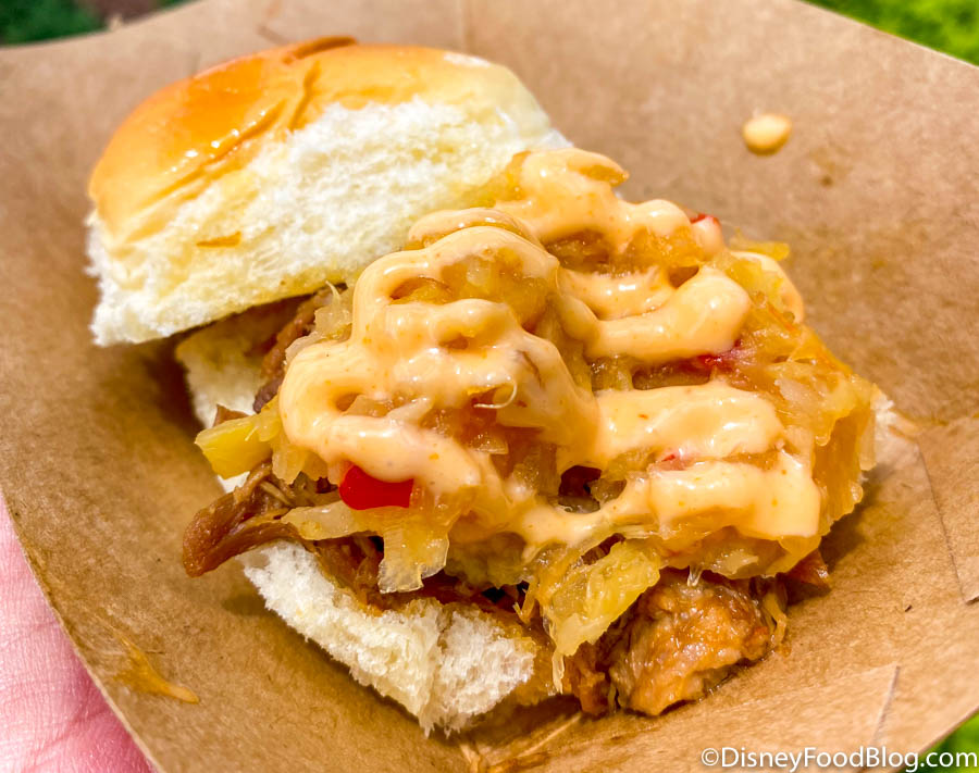 You can also find returning fan-favorites like the Kālua Pork Slider with Sweet-and-Sour DOLE Pineapple Chutney and Spicy Mayonnaise for $5.75. This slider remains a Best of the Fest option for us with a wonderfully doughy roll, heat from the mayonnaise, sweet slaw, and salty pork for the perfect combination!