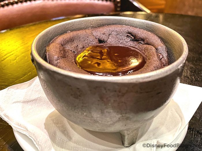 The dessert is served warm. It was a little bit on the bitter side, and we think some sweet ice cream would’ve gone a long way on this one! Our server did offer it as an add-on, but we turned it down so we could try the cake on its own. For the price, we don’t think this one is quite worth it.