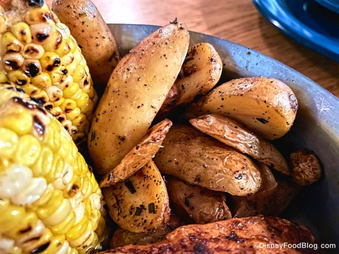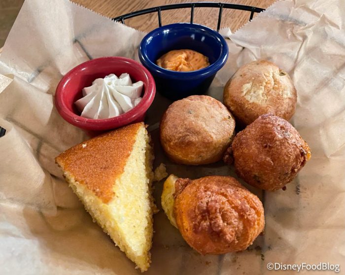 Food-wise, the options here are pretty standard. The salad was ever so slightly elevated and the breads were all really enjoyable (we love a few good toppings for our bread). The main course was just OK though. The meats weren’t destination-worthy, and sides were decent, but not knock-our-socks-off great. BUT, it’s another in an ever-growing list of “family-style” meals at Disney World. Compared to others like Cape May Cafe at Beach Club or even Garden Grill in EPCOT, this spot is a bargain. That said, you’re not getting characters, like Garden Grill, or a much easier to access hotel, like Beach Club Resort for Cape May.