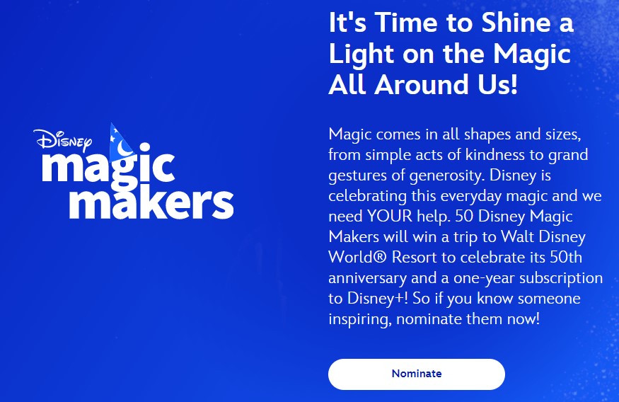 One special thing that Disney is offering as part of the 50th Anniversary celebrations is a way for everyday heroes to win a FREE trip to the Most Magical Place on Earth! Through the new Disney Magic Makers contest, 50 Disney Magic Makers will win a trip to Walt Disney World Resort to celebrate its 50th Anniversary, along with a one-year subscription to Disney+!