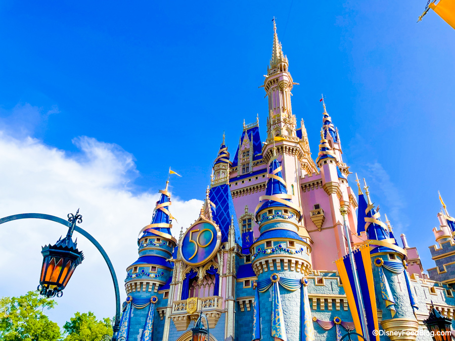 First, Cinderella Castle has undergone quite the transformation and now has all kinds of golden decorations, jewels, and even a large “50” sign on it.