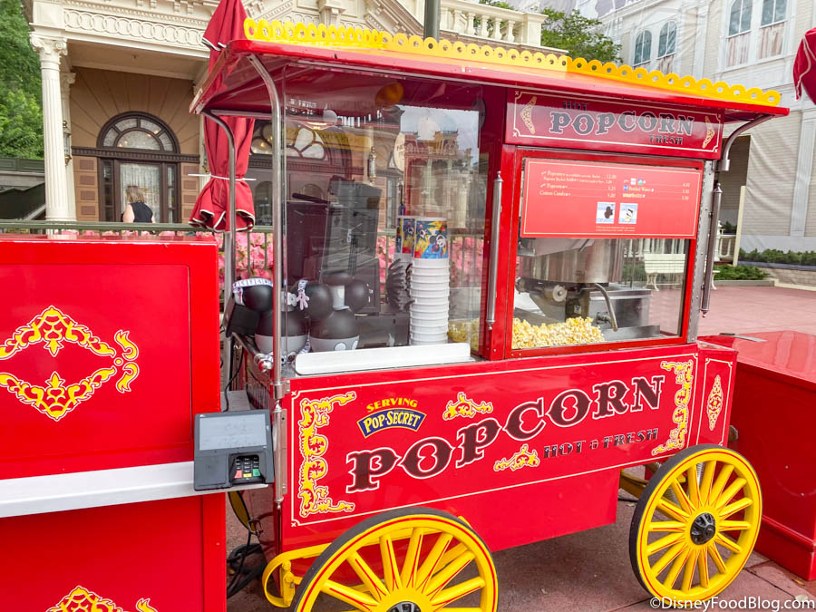 Refillable Popcorn Buckets are located throughout all four Disney World parks. Buy a basic refillable popcorn bucket for $12-$13 or spend a few bucks more for a fun design and you get unlimited refills for $2 each time!