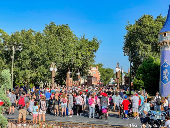 For the past few months, guests have been able to enter the parks early and some of the rides and more have been open about 20 to 30 minutes before the park’s posted operating hours. But, today we visited Magic Kingdom and guests were being held at certain entry points around the Castle hub, more similar to how things were handled pre-COVID.