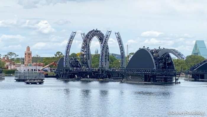 The show will feature floating set pieces that contain moving fountains, lights, lasers, and pyrotechnics. The pieces aren’t just for the show either, there will also be fountains in World Showcase Lagoon during the day! And we’ve already seen some of the water effects being tested.