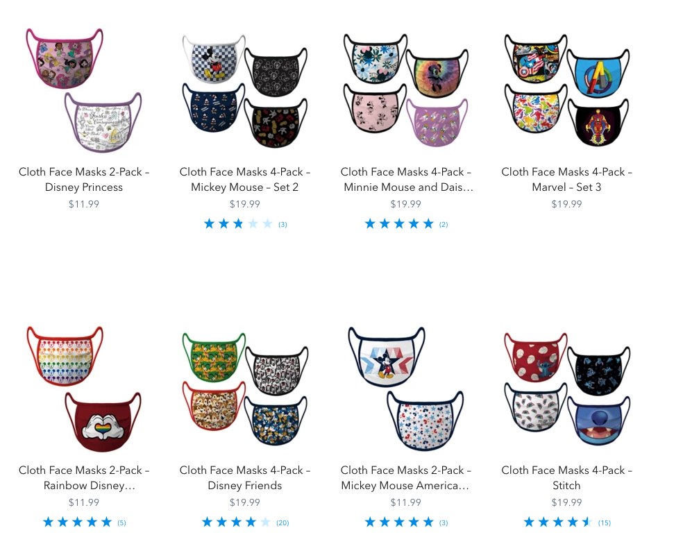 Online the masks have also been heavily discounted on shopDisney. Just about a month ago, we shared that you could get some of the Disney masks for just $3 online!! Certain 2-packs of masks were priced at $3, many 4-packs were priced at $6, and select other masks were also on sale.