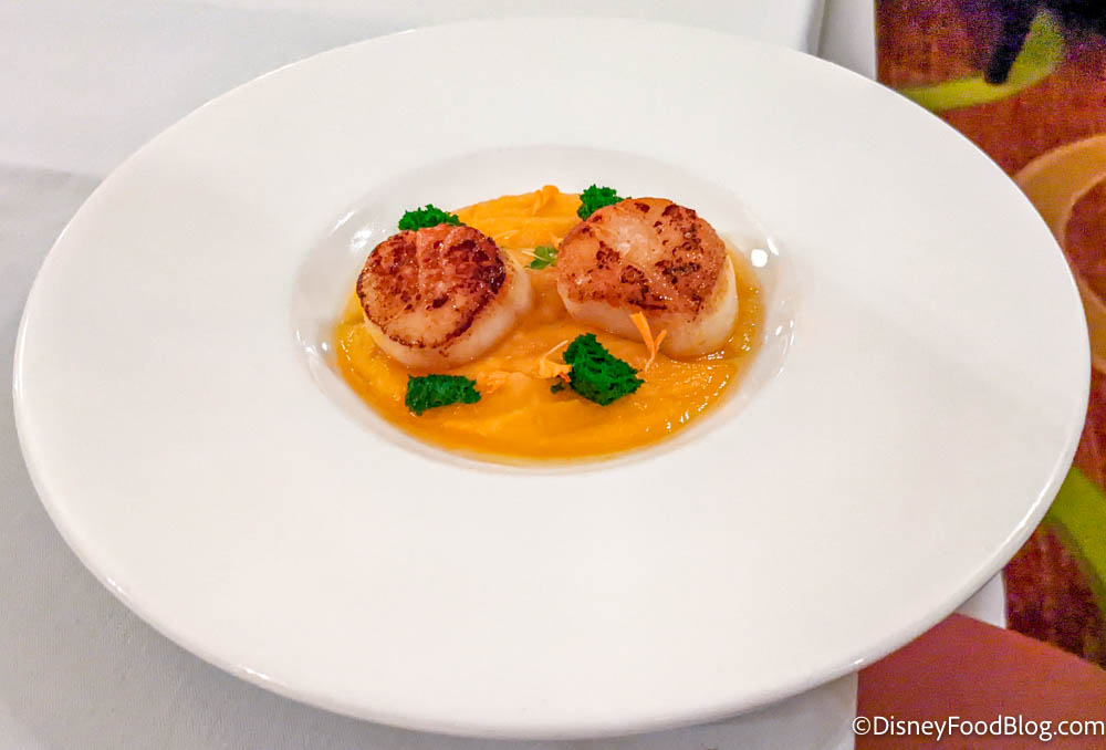 Monsieur Paul is actually considered a signature dining experience by Disney. It is all about creating an authentic French dining experience. You’ll find the cozy spot on the second floor above Chefs de France and feel instantly transported to a fine French restaurant in Paris, not in the heart of a popular theme park! This classically French menu features fresh seafood with a Fish Course being one of 5 courses in the meal.