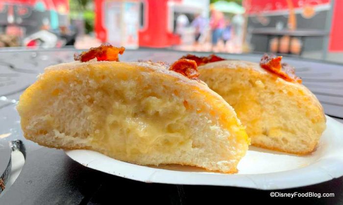 This donut also has plenty of maple-flavored filling, which reminded us of a Bostom Creme donut. The filling had a nicely balanced maple flavor that wasn’t too sweet and paired nicely with the maple icing! We only wish it had a little more bacon on top.