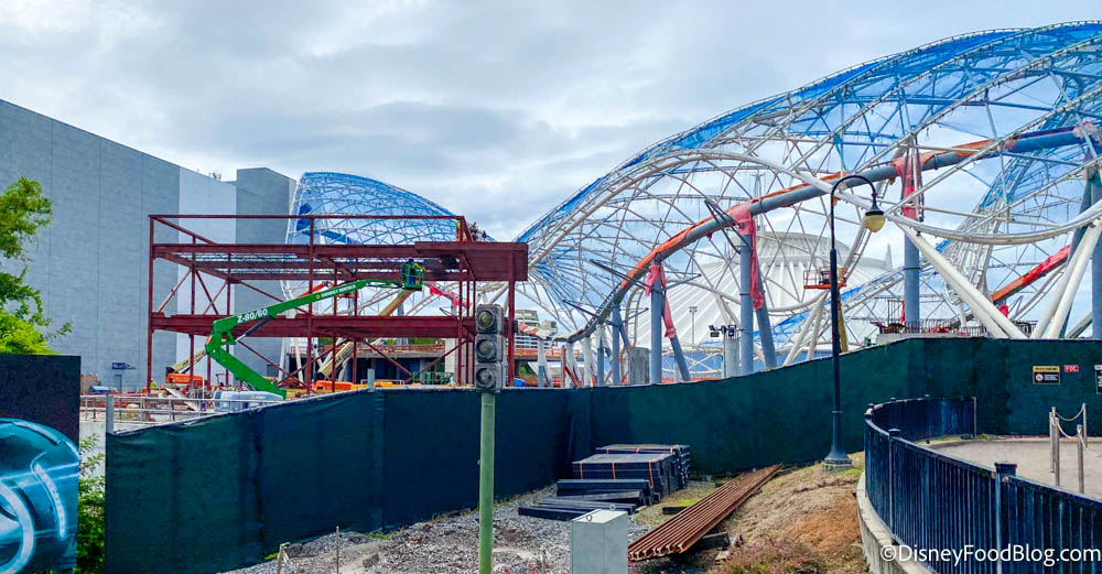 Another ride that’s under construction at Magic Kingdom is the upcoming roller coaster TRON: Lightcycle Run. As far as we know, it won’t be open for a while, but there’s more blue netting up on the outdoor part of the coaster!