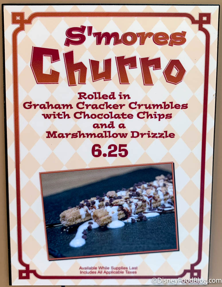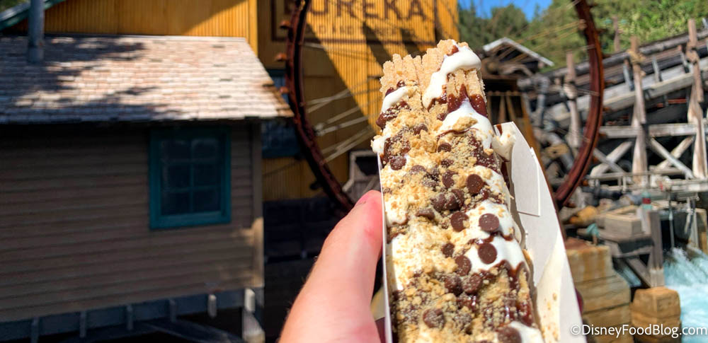 You can get the S’mores churro at the churro stand near the Redwood Creek Challenge Trail in Disney California Adventure!