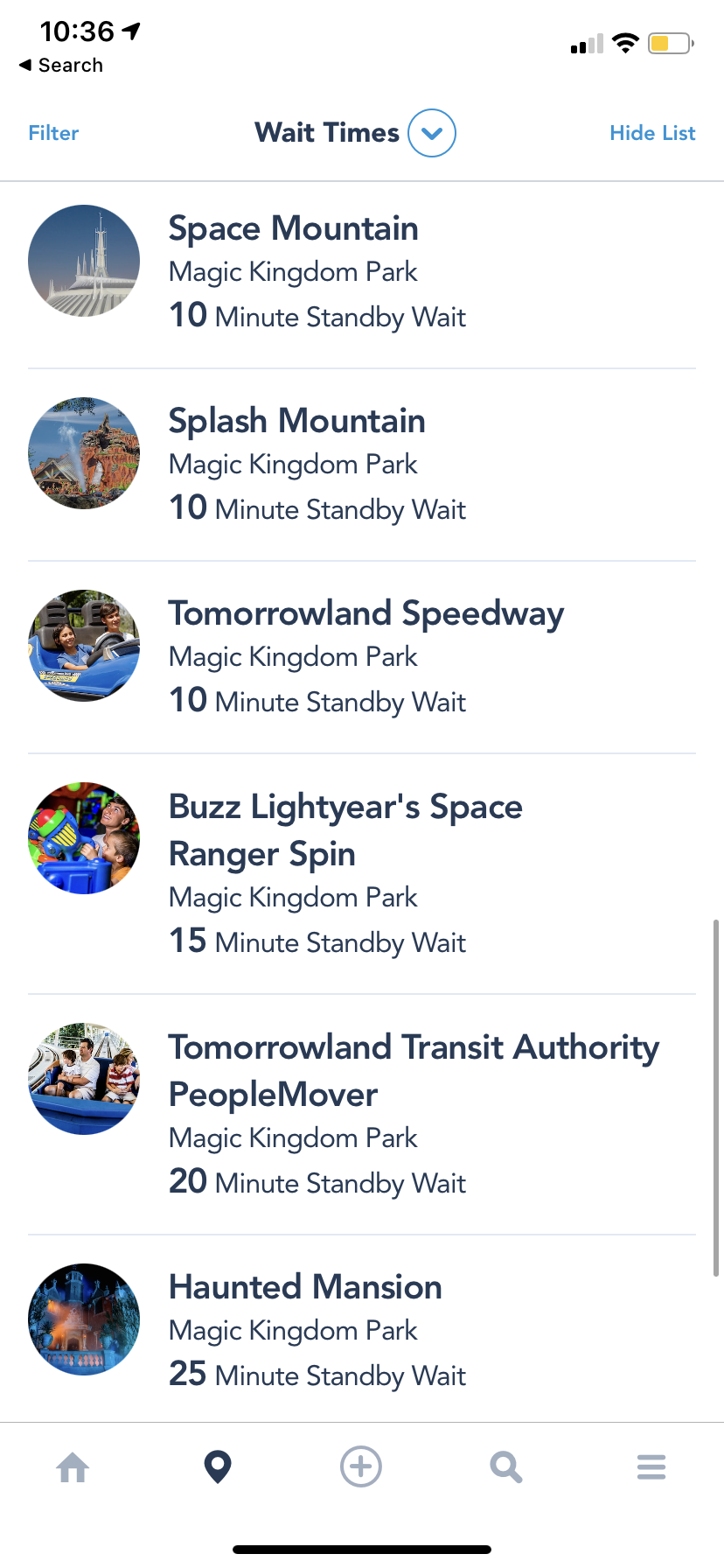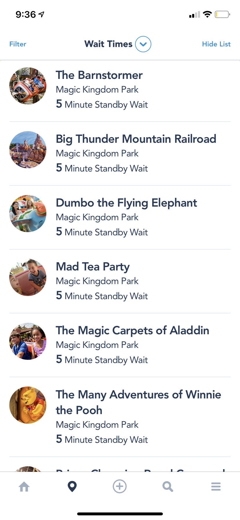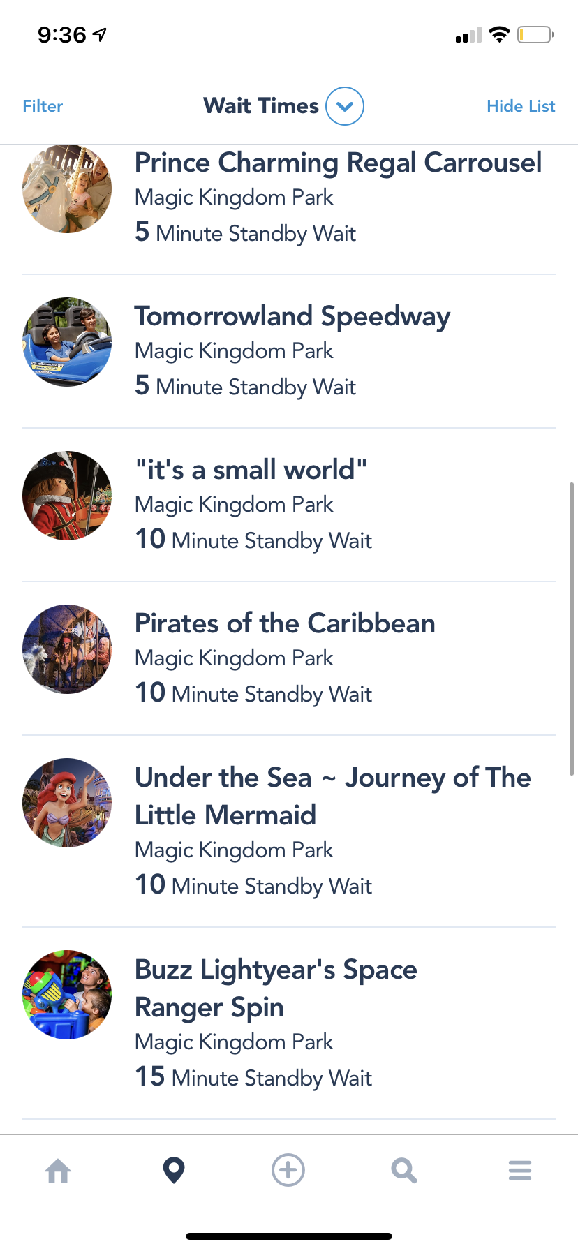 Over on the My Disney Experience app, we checked back in with Fantasyland’s attractions, and saw more low waits!