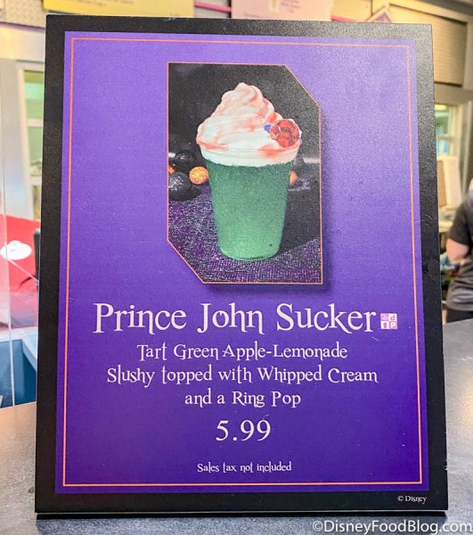 We hopped over to Auntie Gravity’s Galactic Goodies in Tomorrowland to check out the Prince John Sucker Frozen Drink!