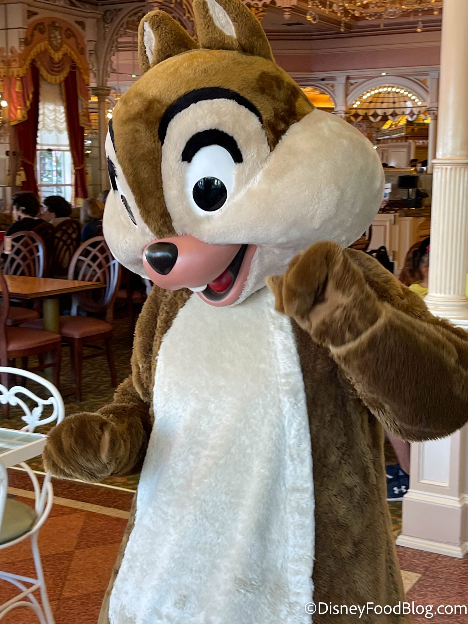Inside, we saw so many of Minnie’s friends. Remember, they will aall greet you from a distance. We saw Chip greeting guests…