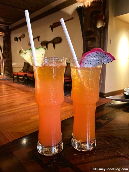 On our trip to ‘Ohana we got the Polynesian Mai Tai with Plantation Original Dark Rum, Bacardí Superior Rum, Bols Orange Curaçao, Lime Juice, Orgeat (Almond) for $13 and Pure Cane Sugar and the Dragon Iced Tea with Hendrick’s Gin, Lemon and Ginger Herbal Tea, Tropical Juices, and Blood Orange for $14! Remember: alcoholic drinks are NOT included with the flat fee for the meal.